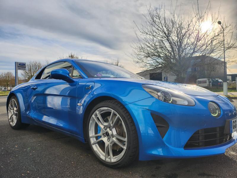 - Logo au centre du volant en Bleu Alpine